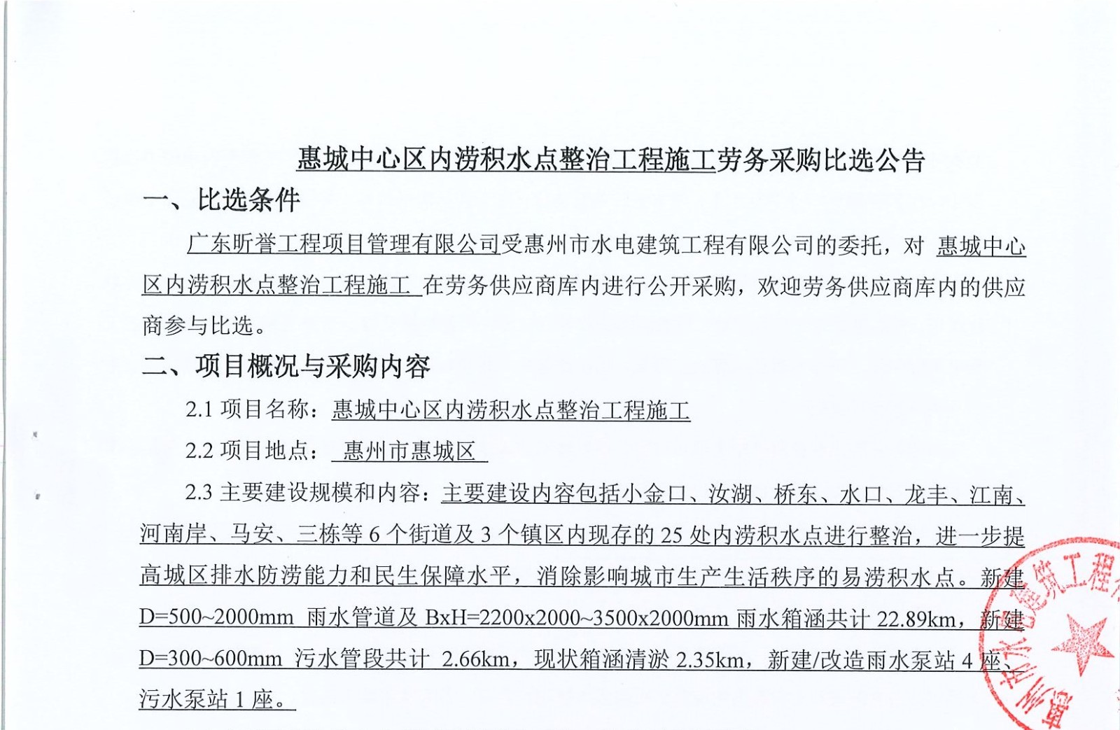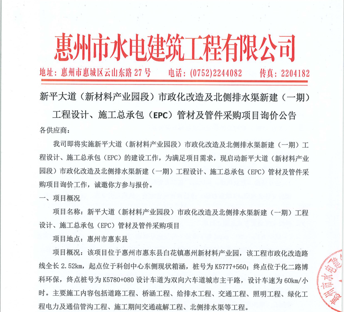 惠州市水電建筑工程有限公司成立于一九六四年四月,隸屬惠州市水務集團有限公司,是一家國有綜合性施工企業,主營水利水電工程、房屋建筑、市政工程等施工業務。公司擁有水利水電工程施工總承包一級、建筑工程施工總承包一級、市政公用工程施工總承包一級、公路工程施工總承包三級,公路路基、路面及建筑裝修裝飾專業承包二級,環保工程、機電安裝、河湖整治、輸變電工程專業承包三級等經營資質……